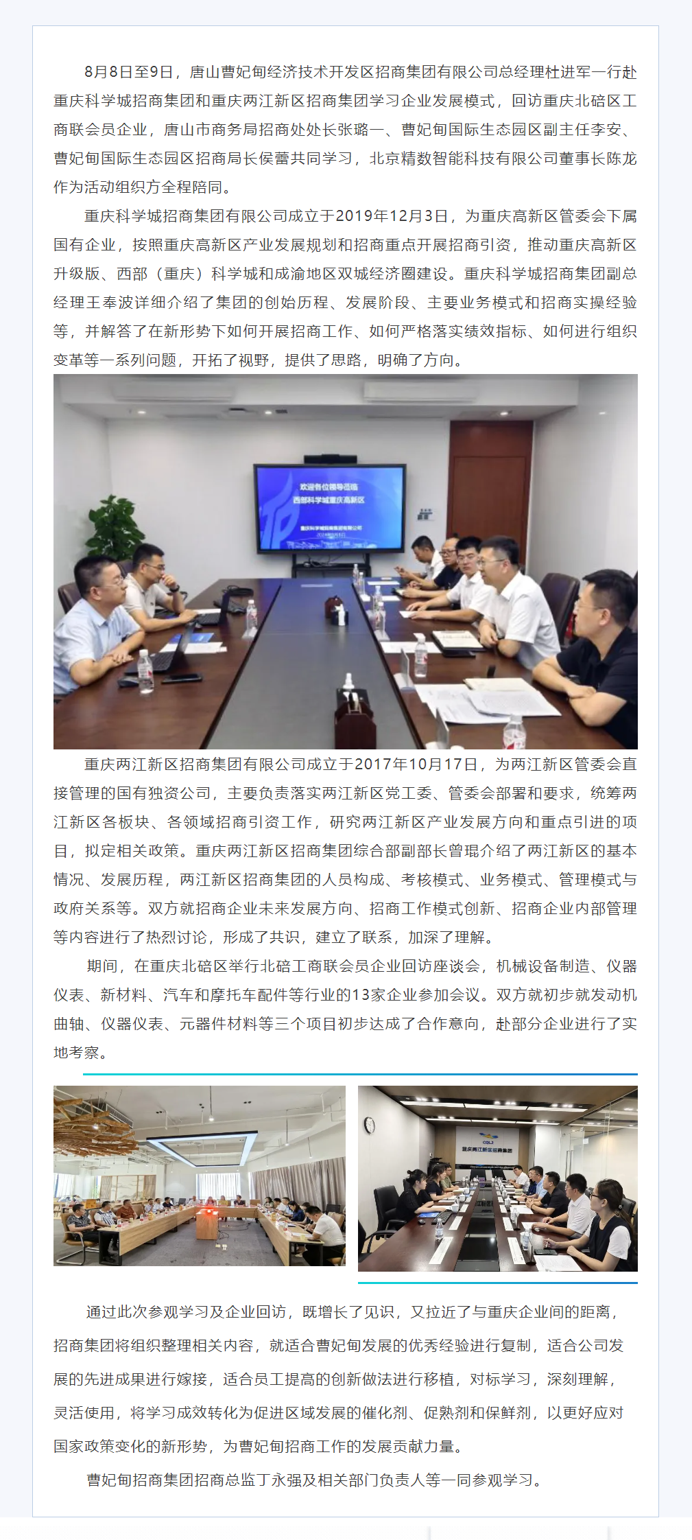 对标学习 共谋发展 | 曹妃甸招商集团总经理杜进军赴重庆学习招商企业发展模式